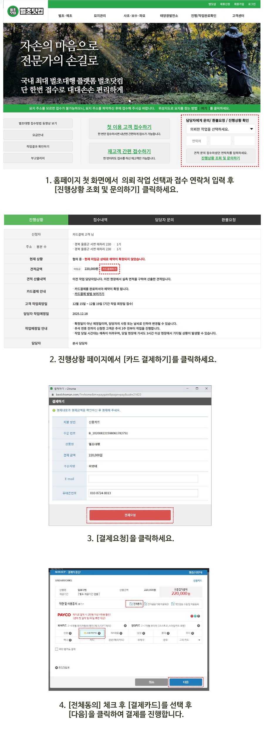 고객님이 지점 담당자와 견적을 확정 후 입금을 하지 않아 벌초일정에 큰 차질을 빚는 경우가 많습니다.